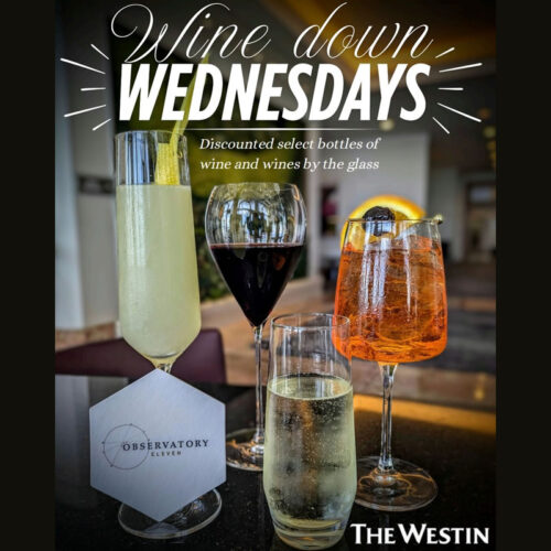 Take a break from back-to-school shopping and enjoy discounted wine by the glass or bottle every Wednesday. Observatory Eleven is located on the top floor of Canal Place inside The Westin.